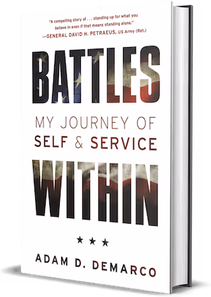 In his debut book, Adam DeMarco chronicles his journey from his early childhood days to his call to arms after 9/11, from the deployments to southwest Asia to the highs and lows of the political campaign trail, and from picking up the pieces of failure after failure to finding his renewed sense of purpose.